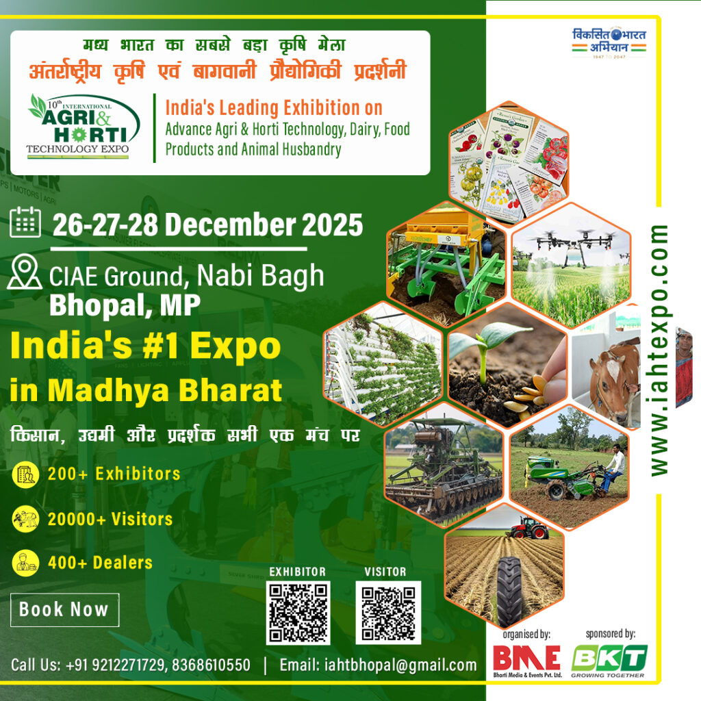 The countdown has begun! The 10th International Agri & Horti Technology Expo 2025 is set to take place on 26–28 December 2025 at CIAE Ground, Nabi Bagh, Berasia Road, Bhopal, Madhya Pradesh. Recognized as India’s leading exhibition on agriculture, horticulture, floriculture, organic farming, dairy, and food technology, this landmark event promises to be a hub of innovation, collaboration, and sustainable growth.